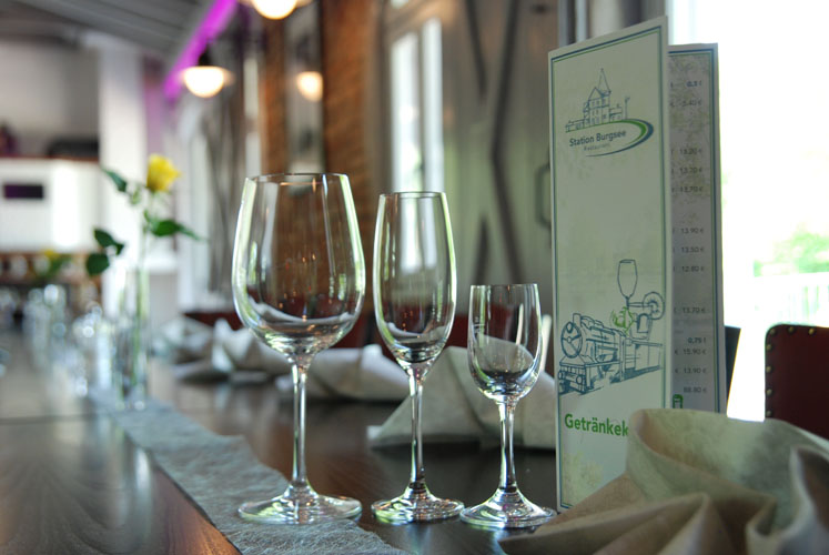 Unser Restaurant „Station Burgsee“ im Historischen Bahnhof Gadebusch bietet Ihnen in zwei Sälen ausreichend Sitzplätze für große Gesellschaften oder Informationsveranstaltungen und Seminare. Unser kleineres a la carte Restaurant bietet unseren Gästen ingesamt 30 Sitzplätze. Im Sommer kommen im angeschlossenen Wintergarten noch einmal 14 Sitzplätze hinzu. Auf der großen Sonnenterrasse mit Blick auf den Gadebuscher Burgsee bieten wir Ihnen 40 Sitzplätze. Genießen Sie die einmalige Atmosphäre in unserem historischen Haus mit unserer modernen aber bodenständigen mecklenburgischen Küche.